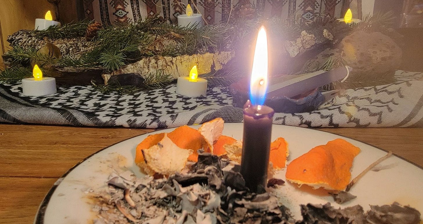 After Yule is completed, we return the log and all the nature we gathered to make it beautiful right back to where we found it. It felt like the right way to say thank you; to close the ritual the same way we opened it, with respect for what the Earth offered us.